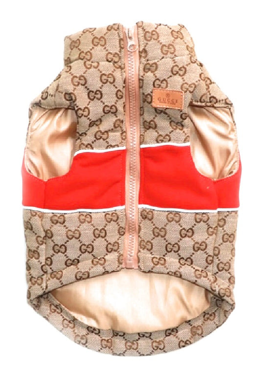 Red Guchi Puffer Gilet With Leash
